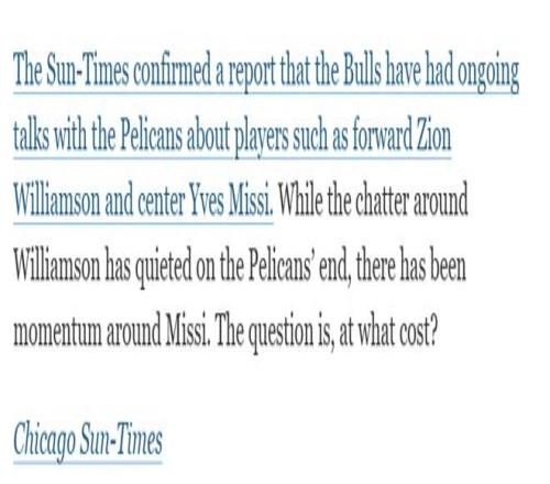 公牛鹈鹕谈判交易锡安!中锋米西也在讨论范围内武切怀特成筹码