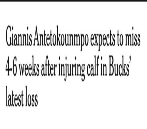 打完雄鹿生涯最后一战字母哥亲宣右小腿受伤:预计缺席46周