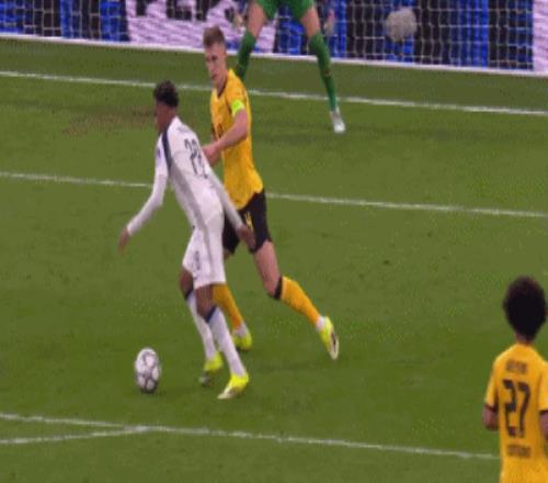 第20分钟,贝林厄姆禁区疑似手球,裁判没有判点