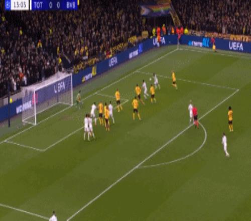 第37分钟,索兰克禁区幸运脚后跟破门,热刺2-0多特